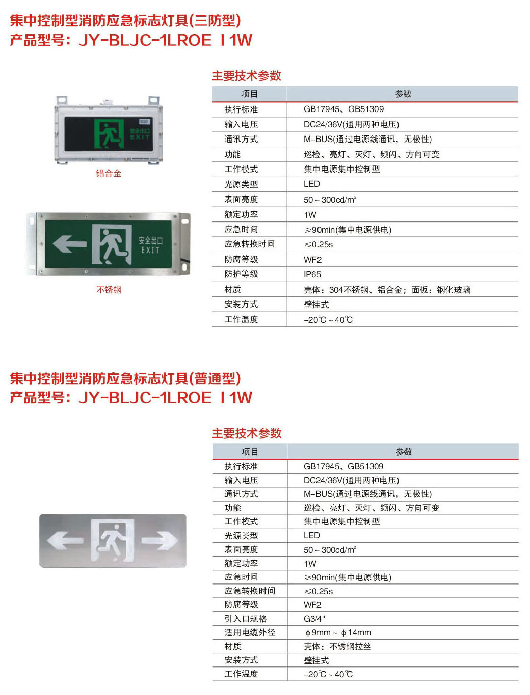 JY-BLJC-1LROE I 1W集中電源集中控制型消防應急標志燈具(三防型、普通型)